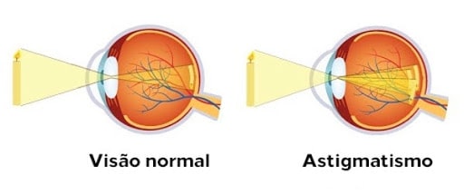 No caso de uma pessoa com astigmatismo, o formato de sua córnea é oval. Assim, quando os raios de luz passam pelo globo ocular, acabam sofrendo um desvio. Portanto, a visão resultante torna-se distorcida.