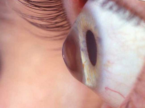Trata-se de uma doença que ocorre na córnea, em que esta fica saliente, na forma de um cone. Quem possui a condição tem afinamento e encurvamento progressiva da córnea, deixando-a irregular.
